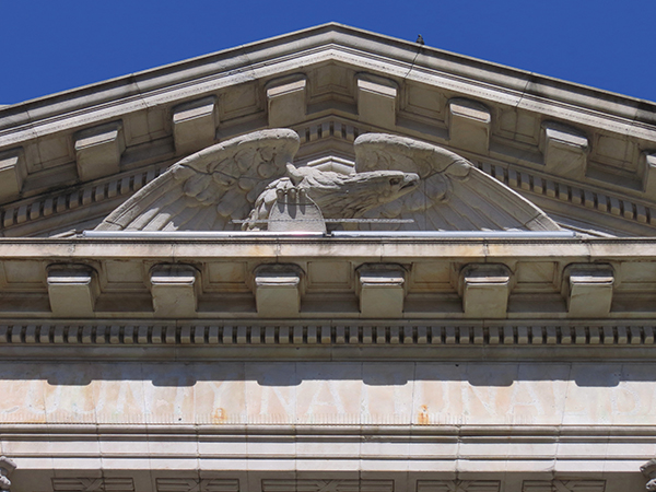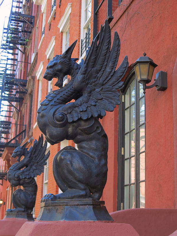 Start at 14th Street and Eighth Avenue. This is the granddaddy of #4 on this list: a large glowering stone eagle originally intended to instill a sense of security for this bank’s entering patrons. Benjamin Franklin’s choice of the Wild Turkey as the national bird would not have cut the same regal profile—had his candidate won. Millie likes this one because it’s a good focal point for her anxiety before heading up the stairs lickety-split to the vet next door. (Okay, I gave you that one—the clues get harder like the Times crossword puzzles during the week.)