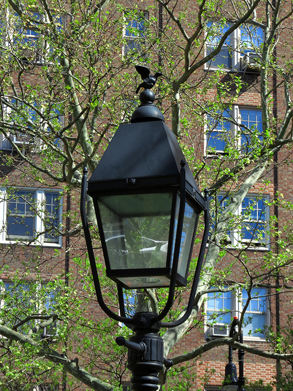 While you’re scanning the tree tops for these rainbow-hued transient charmers (which I know you are), here’s a West Village May Day Tour and Scavenger Hunt for what I call “sturdy birds”—birds that are just “there” all of the time for us to see—on which to practice your observation skills before that deluge of migrating wonders pass through. Today, Corgi Queen of the May Millie is staying home instead to scavenge for errant treats lurking beneath the furniture. Here we go:
