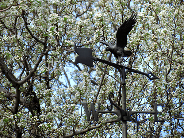 Let me know if you’ve found more avian iconography during your neighborhood excursions. I hope that while tracking down these “sturdy birds” you were keeping an eye out for migrating super-stars: Blue- and Green-throated Warblers, White-eyed and Blue-headed Vireos, Kinglets, Blue-gray Gnatcatchers and Northern Parulas. I know I was.