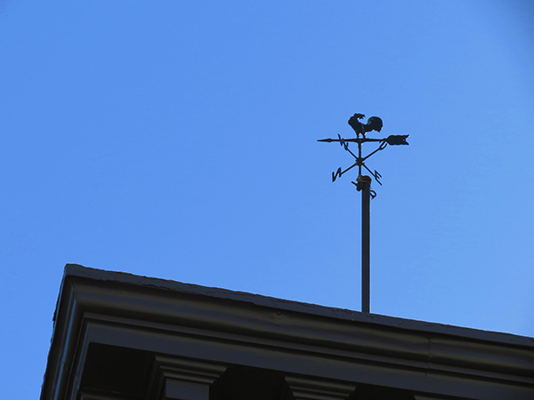 719 Greenwich Street. The weathervane is visible from the entrance of the parking garage just north of Perry Street.