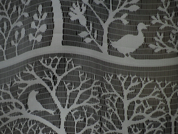 Perhaps these ducks are “flimsy birds” rather than “sturdy birds”—white, woven and light diffusers. Doves and thrushes forage nearby—as well as rabbits. (Look at window curtains.)