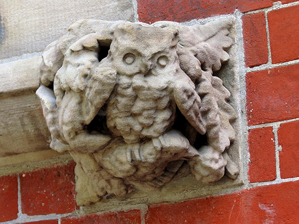 Head to the neighborhood’s former court house and prison site. Look for the date 1876 on a commemorative plaque, turn to your left and walk to the corner. Imagine getting a cool drink on a hot summer day, then look in front of you at a satisfied Great Blue Heron (the frog in its bill may not feel so satisfied). Walk around the block, feasting on the stone flora and fauna which decorate this landmark—songbirds, a solitary owl and a squirrel with a nut are highlights (as are the prodigious displays of tulips at this time of year along the way.)