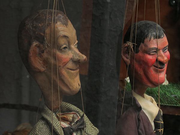 Again, head south. Protected by the 24/7 vigilance of a lone soldier, this trio of species-challenged birds are visible day and night, though the nocturnal up-lighting doesn’t illuminate them to their best advantage. The fronts of these birds look like ducks, but the hind-quarters look more like Mockingbirds tucking their tails in shame. Perhaps the sculptor was presaging the new wave of paleontological discoveries that Velociraptors may have had feathers!