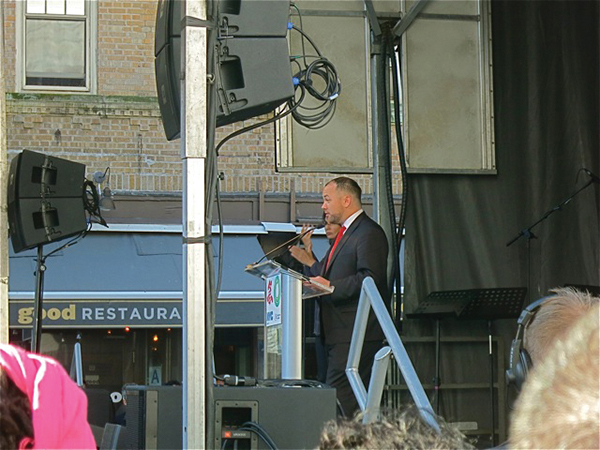 On December 1st, with Council Member Corey Johnson and Mayor Bill de Blasio among the many speakers in attendance, the long awaited AIDS Memorial, across from the former site of St. Vincent’s Hospital, was finally unveiled though only temporarily, as it turned out. For afterwards, to everyone’s surprise, the fence around it was in place again. However, the good news from the AIDS Memorial Organization is that, after large granite benches (arriving the week of December 19th) are installed, the Memorial will again be open to be public at the end of the month, taking its rightful place as a part of “The New York City AIDS Memorial Park at St. Vincent’s Triangle.” Photos and text by Maggie Berkvist.