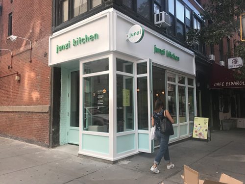 Junzi Kitchen (170 Bleecker Street at the corner of Sullivan Street): Last month we reported on how the idea for Junzi Kitchen was hatched at the Yale Entrepreneurial Institute; in July, the team opened their third location. The fast-casual menu features bings (flour tortilla-like wrappers filled with meats, vegetables and sauces) and two types of noodles (spring and knife). The vegetable toppings are seasonal, and the garnishes include shrimp salt and chive ash. The homemade bing dough is turned into little balls by a machine called a dough divider which resembles an Imperial Stormtrooper. In addition to the standard menu there will be an after-hours street food menu starting in the fall as well as a monthly chef’s table dinner series.