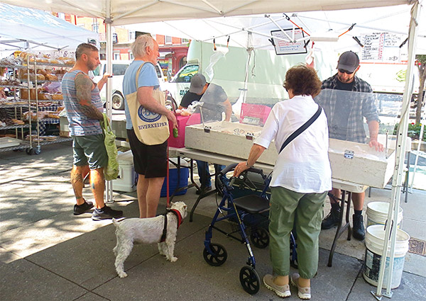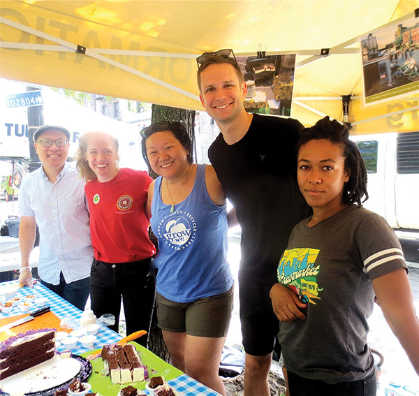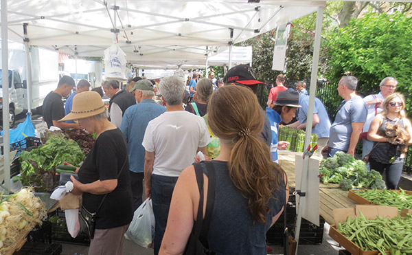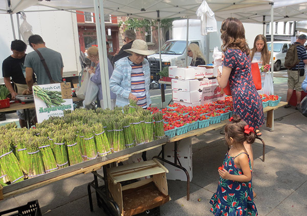 IT WAS THEIR SILVER JUBILEE—so, on June 15th, Abingdon Square Greenmarket threw a party, and offered cake to the many regulars who came to celebrate, including Erik Bottcher from City Council Speaker Corey Johnson’s office, top right. All our usual favorites were there, offering their fresh fruit and veggies, fish, cheeses and baked goodies—and even BookBook, which has a stand there now their Bleecker Street store has closed. Here’s to the next twenty five years! All photos by Maggie Berkvist.