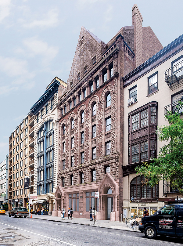 After reading a two-part series I wrote on the redesign of the former Tammany Hall overlooking Union Square (WestView News, April and May 2015), Harry Kendall, a principal architect for BKSK Architects, showed me designs for a partially rebuilt facade of an historic R. H. Robertson building located in the Ladies’ Mile Historic District on East 16th Street, a half block west of Union Square. The firm was asked to insert a nine-story hotel in the center of this through-block lot which would incorporate the 19th century Romanesque facade with a horizontal stone parapet wall at the top. Upon researching, Kendall discovered Robertson’s original design for the missing pedimented doorways at the ground floor, and a rather magnificent peaked gable roof just above the current parapet. BKSK have adopted both these designs in their proposal. The proposed entrances and windows on the ground floor will be replicated in sandstone to be mined in Mississauga, Ontario, Canada.