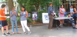 Postcards To Voters (PTV) does not normally engage in primaries, but excited New Yorkers kept contacting PTV founder, Tony the Democrat, about a handful of rogue incumbent “Democrats” in the NY State Senate who consistently caucused with Republicans, thus blocking progressive legislation. That August, tens of thousands of handwritten postcards rained into the IDC districts, alerting Democrats that the primary election was on a September Thursday (not a Tuesday!) and to vote “true blue.” Six of eight IDC challengers won! That fall, PTV volunteers also wrote for Democratic nominees James Skoufis and Jim Gaughran, who also won. The NY State Senate turned decisively blue, and soon after inauguration, freshman Senator Zellnor Myrie was introducing and passing new voting laws, and Senator Brad Hoylman had his GENDA bill voted into law. A few months later, freshman Senator James Skoufis came into the city and gave a moving speech about the significance of the postcards at PTV’s second-anniversary celebration at The Center on West 13th Street.